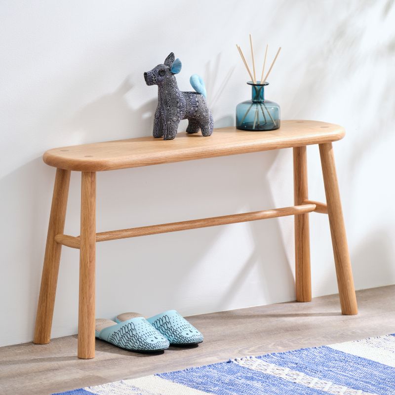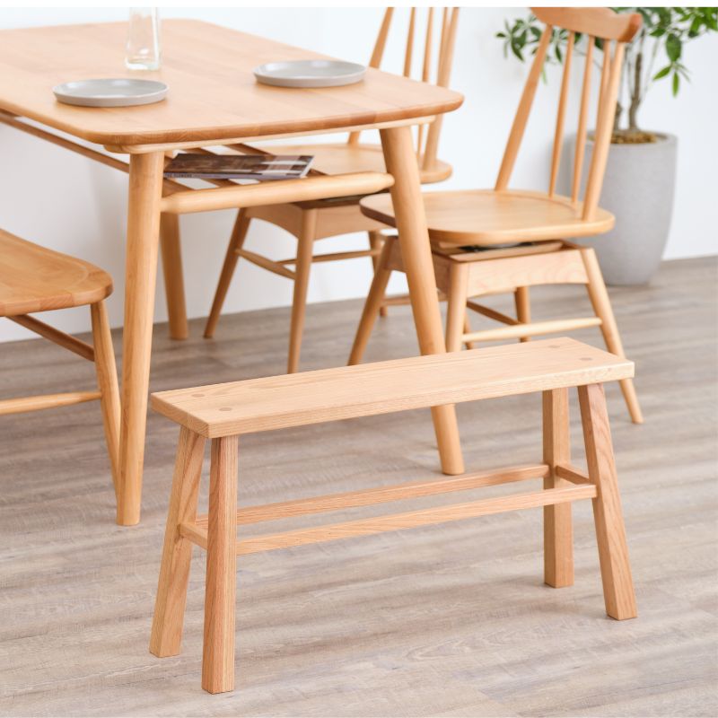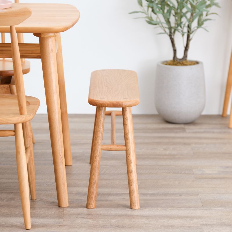 レッドオーク無垢材天然木を使用。ナチュラルな木目と美しいオイル仕上げで、空間にやさしい印象を与えます。玄関・廊下・ダイニング・キッズスペースなど多用途に対応となっております。